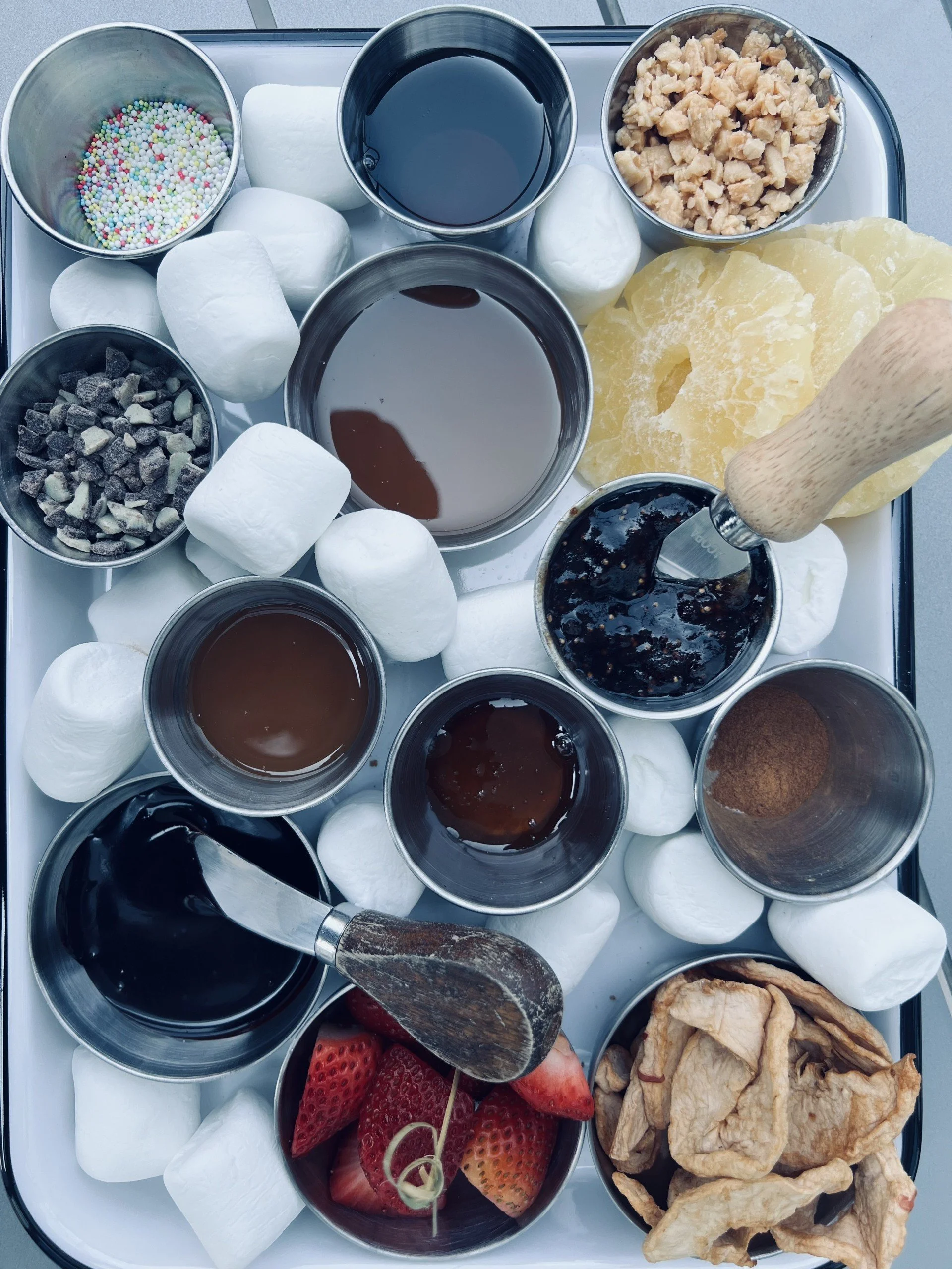 Think s’mores- but make it grown up. This seasonal experience features your own mini fire pits and DIY s’mores boards with rotating flavors and styles every week!